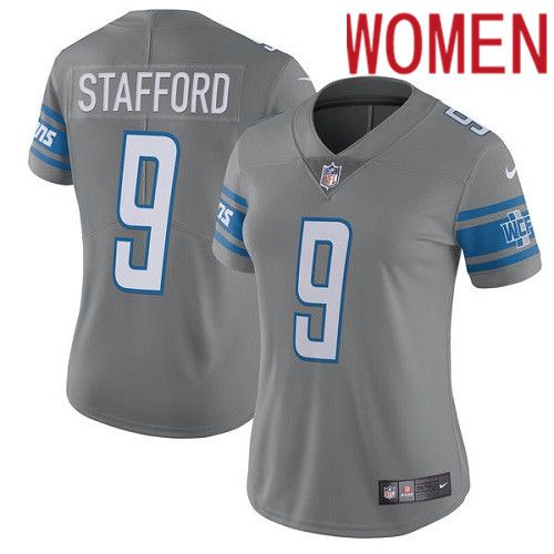 Women Detroit Lions #9 Matthew Stafford Nike Grey Rush Vapor Limited NFL Jersey