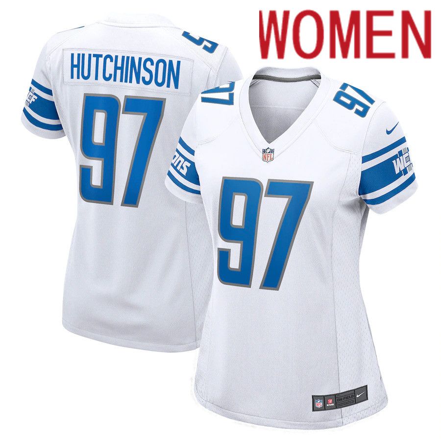 Women Detroit Lions #97 Aidan Hutchinson Nike White 2022 NFL Draft First Round Pick Game Jersey