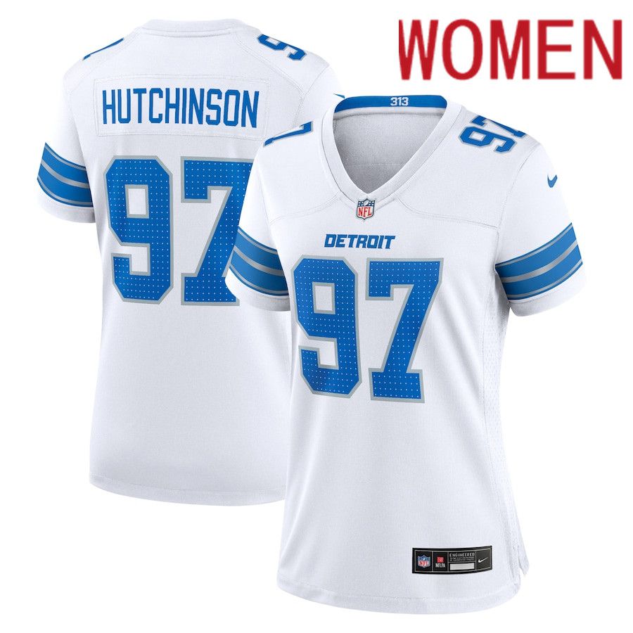 Women Detroit Lions #97 Aidan Hutchinson Nike White Game NFL Jersey