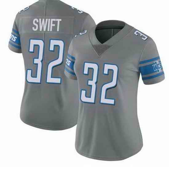 Women Detroit Lions D'Andre Swift #32 Grey Stitched NFL Jersey
