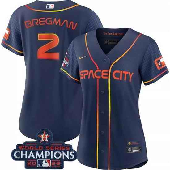 Women Houston Astros #2 Alex Bregman Navy 2022 World Series Champions City Connect Stitched Baseball Jersey