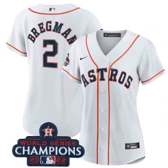 Women Houston Astros #2 Alex Bregman White 2022 World Series Champions Cool Base Stitched Baseball Jersey