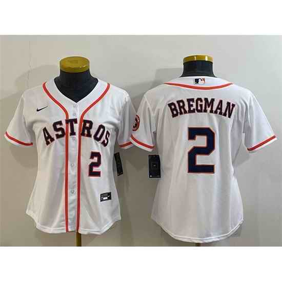Women Houston Astros #2 Alex Bregman White With Patch Cool Base Stitched Baseball Jersey