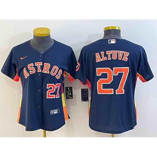 Women Houston Astros #27 Jose Altuve Navy With Patch Cool Base Stitched Baseball Jersey 1
