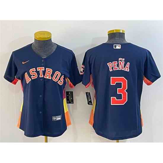 Women Houston Astros #3 Jeremy Pena Navy With Patch Cool Base Stitched Baseball Jersey 1