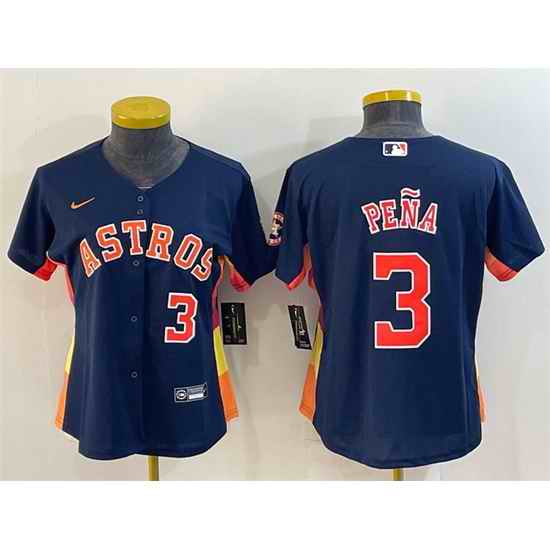 Women Houston Astros #3 Jeremy Pena Navy With Patch Cool Base Stitched Baseball Jersey