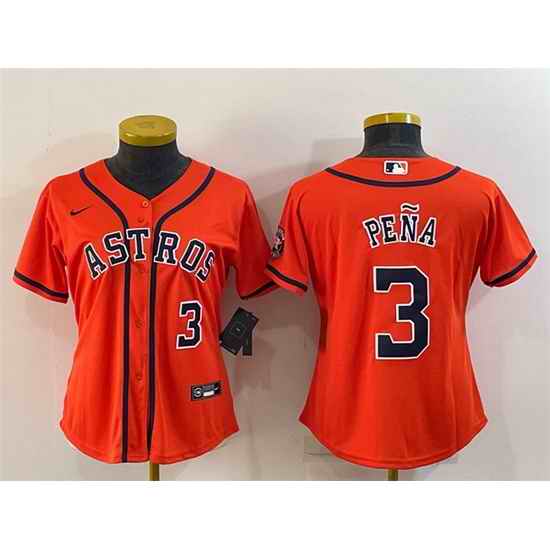 Women Houston Astros #3 Jeremy Pena Orange With Patch Cool Base Stitched Baseball Jersey 1