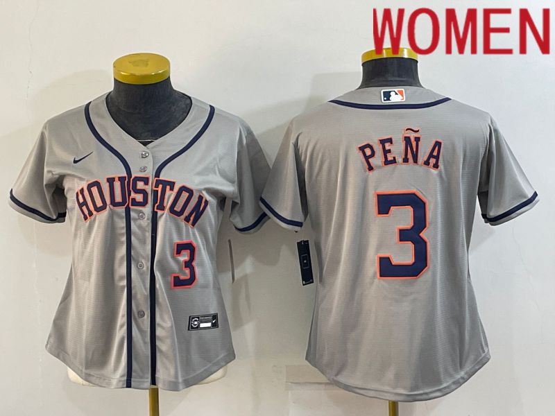 Women Houston Astros #3 Pena Grey Game Nike 2022 MLB Jerseys