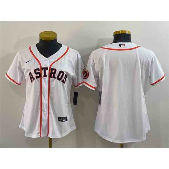 Women Houston Astros White With Patch Cool Base Stitched Baseball Jersey