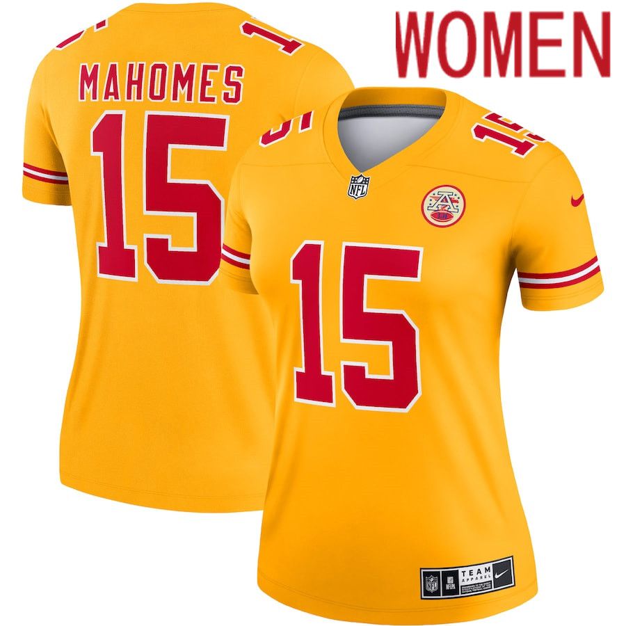 Women Kansas City Chiefs #15 Patrick Mahomes Nike Gold Inverted Legend NFL Jersey
