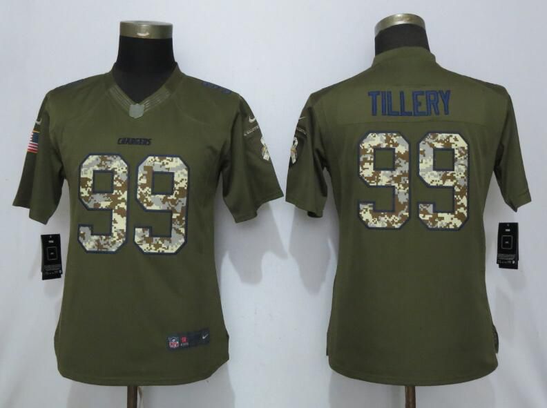 Women Los Angeles Chargers #99 Tillery Green Salute To Service Nike NFL Jerseys