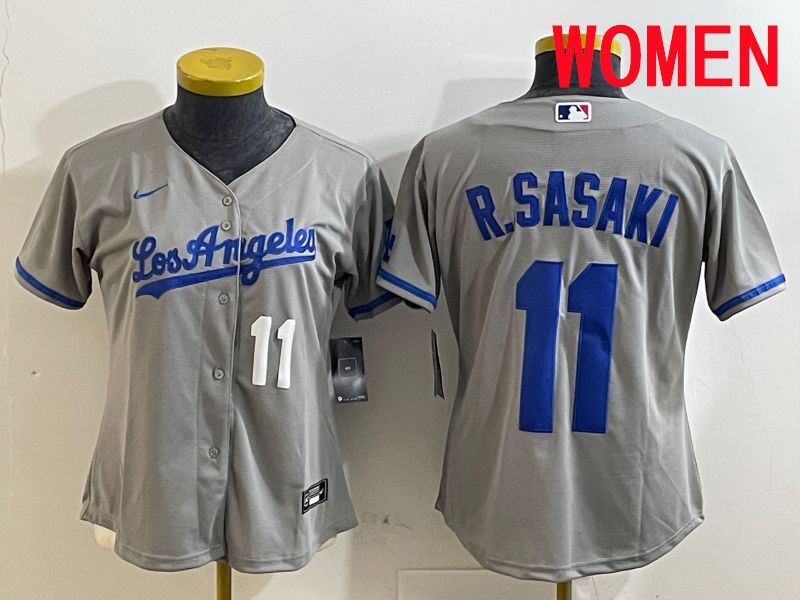 Women Los Angeles Dodgers #11 R.Sasaki Grey Game 2025 Nike MLB Jersey style 8