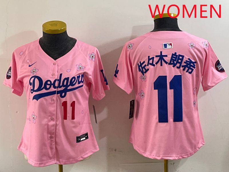 Women Los Angeles Dodgers #11 R.Sasaki Pink Sakura Edition 2025 Nike MLB Jersey style 2