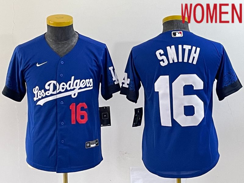 Women Los Angeles Dodgers #16 Smith Blue City Edition Nike 2023 MLB Jersey
