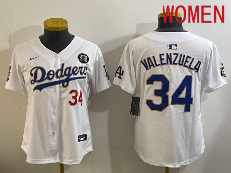 Women Los Angeles Dodgers #34 Valenzuela White Gold Game 2024 Nike MLB Jersey style 1120