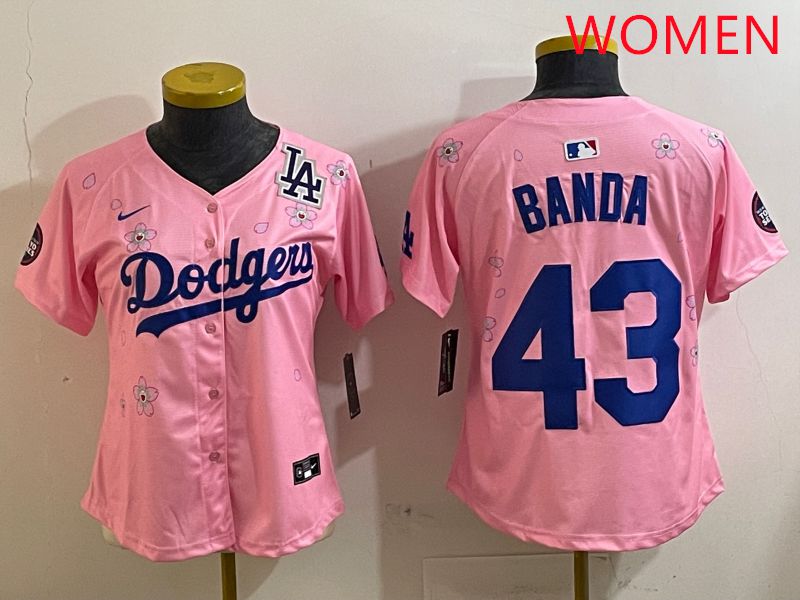 Women Los Angeles Dodgers #43 Banda Pink White Blue Sakura Edition 2025 Nike MLB Jersey style 9