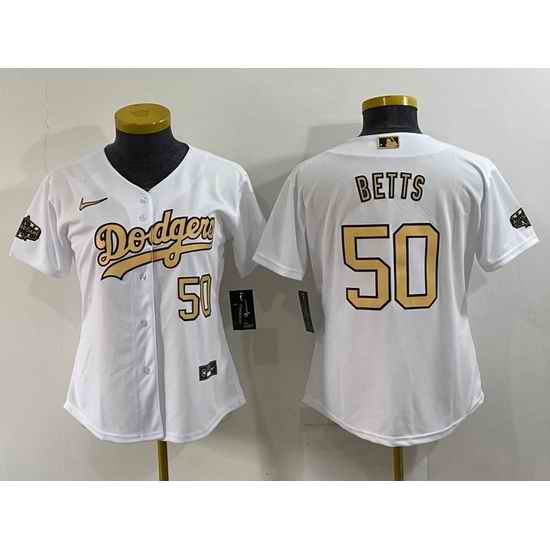 Women Los Angeles Dodgers #50 Mookie Betts 2022 All Star White Stitched Baseball Jersey 28Run Small 29