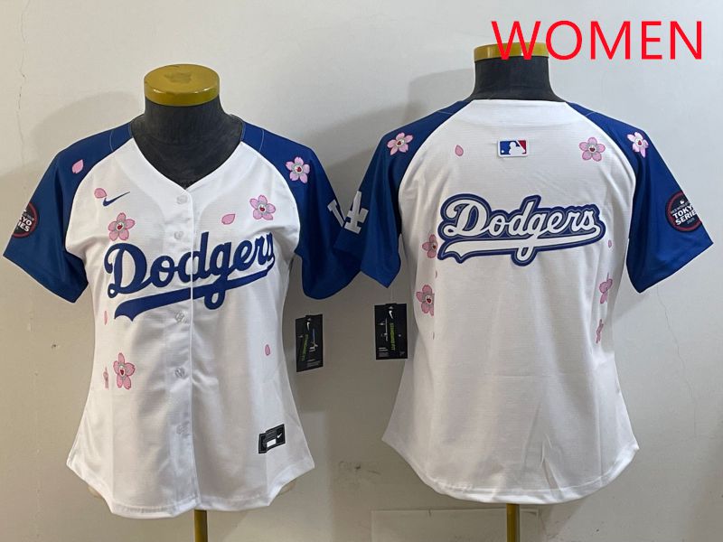 Women Los Angeles Dodgers Blank White Blue Sakura Edition 2025 Nike MLB Jersey style 13