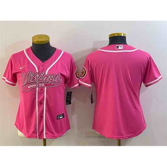 Women Minnesota Vikings Blank Pink With Patch Cool Base Stitched Baseball Jersey