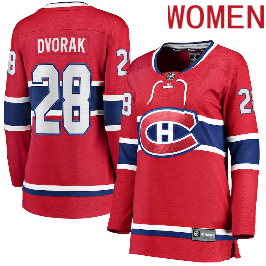 Women Montreal Canadiens #28 Christian Dvorak Fanatics Branded Red Home Breakaway Player NHL Jersey