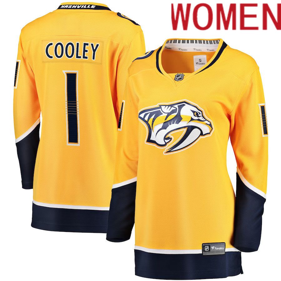 Women Nashville Predators #1 Devin Cooley Fanatics Branded Gold Home Breakaway Player NHL Jersey