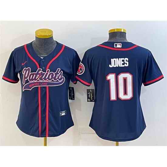 Women New England Patriots #10 Mac Jones Navy With Patch Cool Base Stitched Baseball Jersey