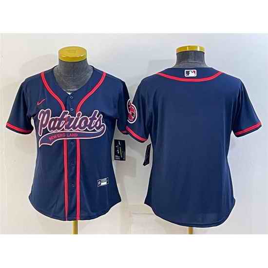 Women New England Patriots Blank Navy With Patch Cool Base Stitched Baseball Jersey