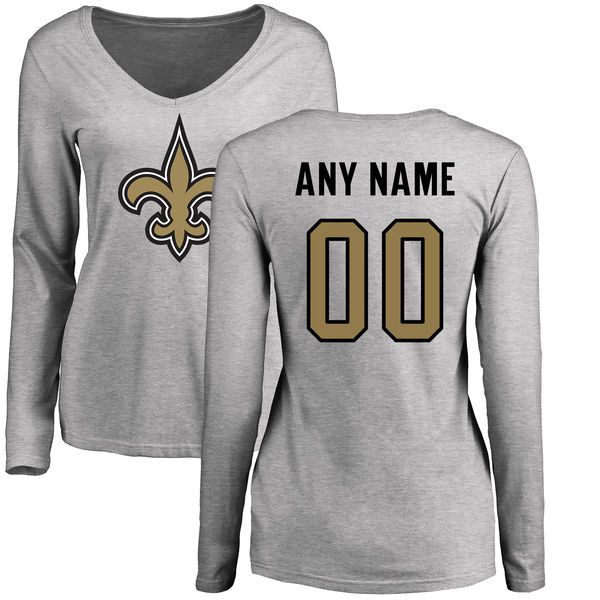 - Women New Orleans Saints NFL Pro Line Ash Custom Name and Number Logo Slim Fit Long Sleeve T-Shirt