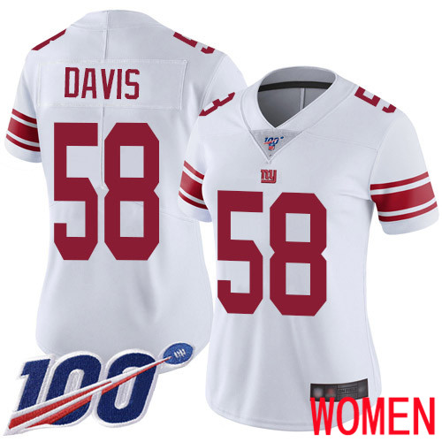 Women New York Giants #58 Tae Davis White Vapor Untouchable Limited Player 100th Season Football NFL Jersey