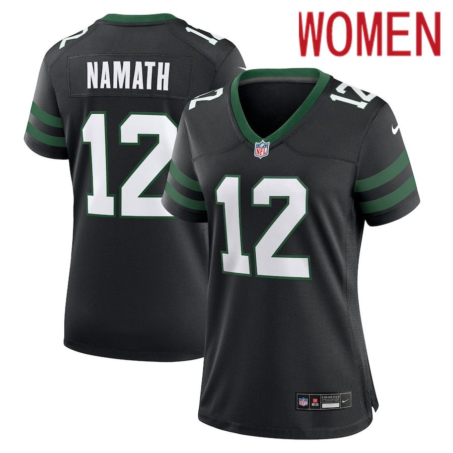 Women New York Jets #12 Joe Namath Nike Legacy Black Retired Player Alternate Game NFL Jersey