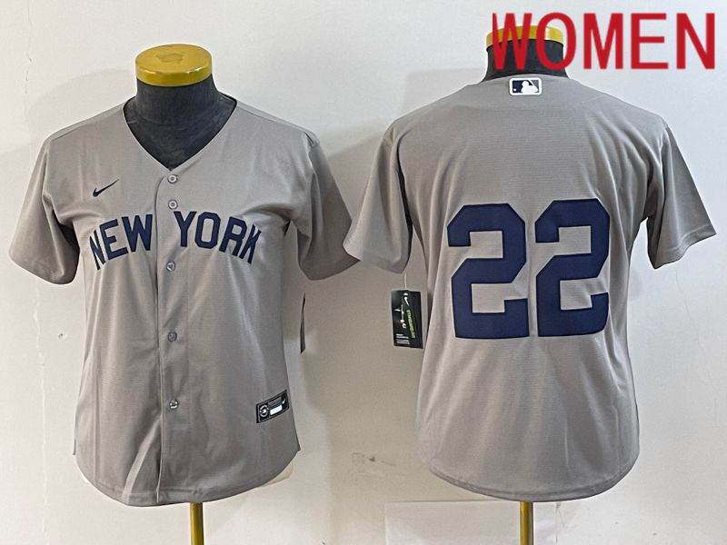Women New York Yankees #22 No name Grey Nike Game 2024 MLB Jersey style 7