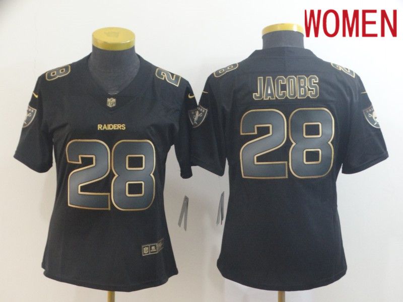 Women Oakland Raiders #28 Jacobs Nike Vapor Limited Black Golden NFL Jerseys