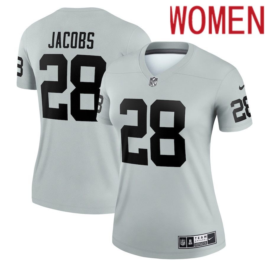 Women Oakland Raiders #28 Josh Jacobs Nike Grey Inverted Legend NFL Jersey