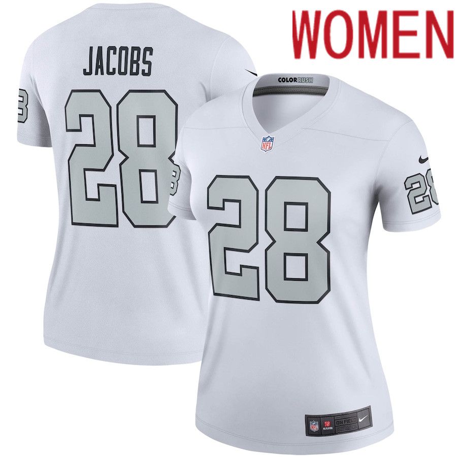 Women Oakland Raiders #28 Josh Jacobs Nike White Color Rush Legend Player NFL Jersey