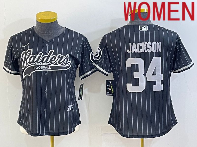 Women Oakland Raiders #34 Jackson Black stripe 2022 Nike Co branded NFL Jerseys