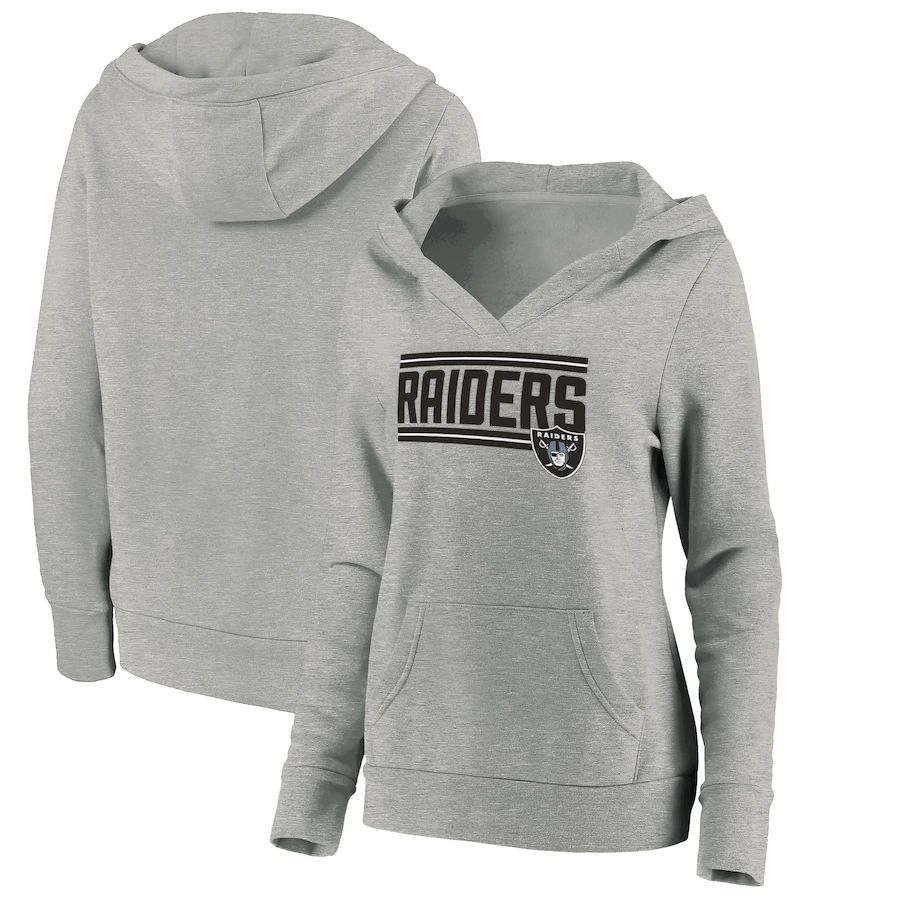 - Women Oakland Raiders Fanatics Branded Heathered Gray On Side Stripe V-Neck Pullover Hoodie