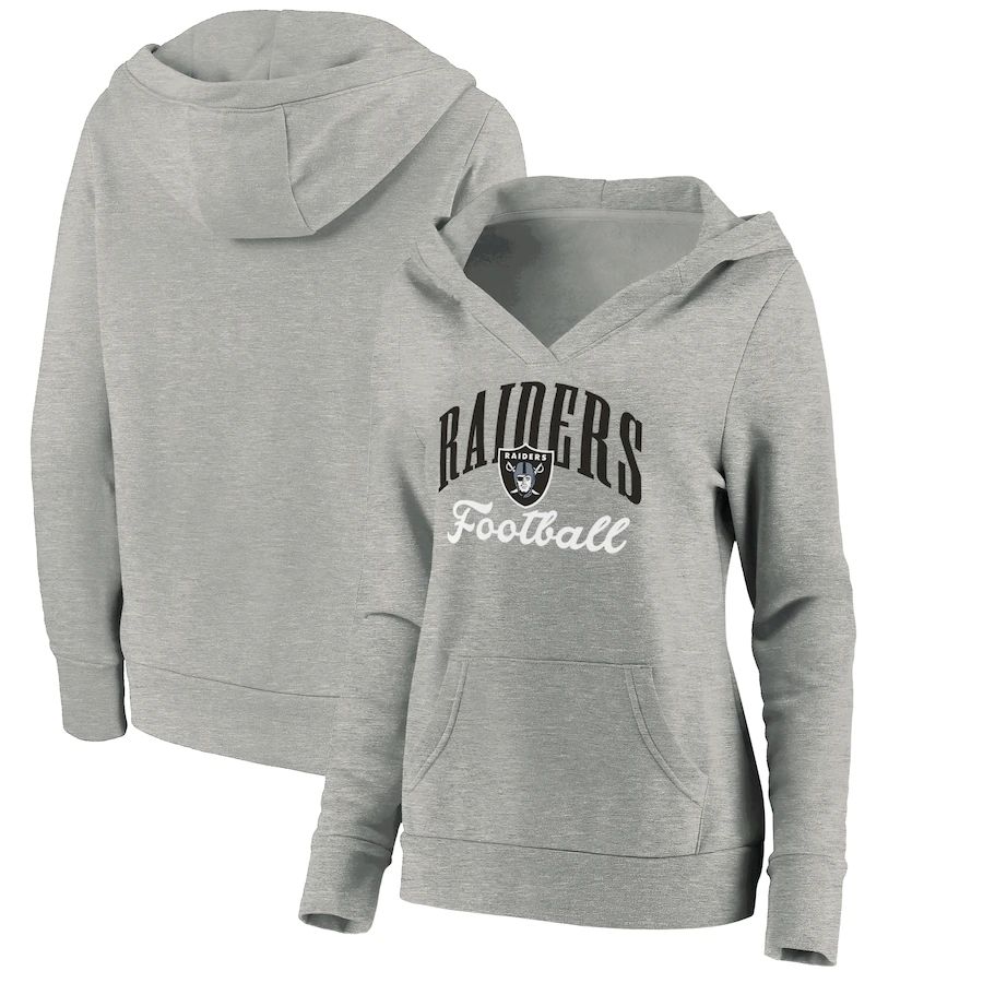 - Women Oakland Raiders Fanatics Branded Heathered Gray Victory Script V-Neck Pullover Hoodie