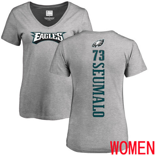- Women Philadelphia Eagles #73 Isaac Seumalo Ash Backer V-Neck NFL T Shirt