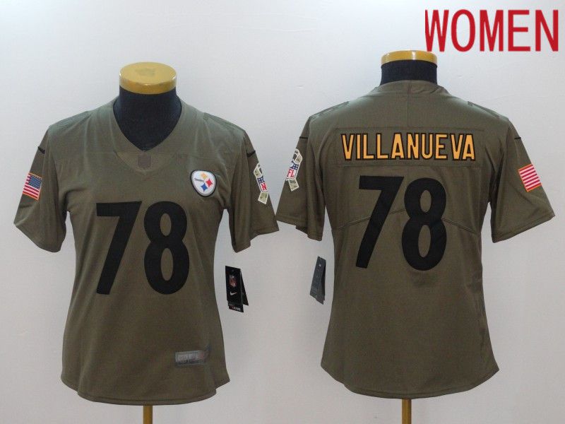 Women Pittsburgh Steelers #78 Villanueva black Nike Olive Salute To Service Limited NFL Jersey