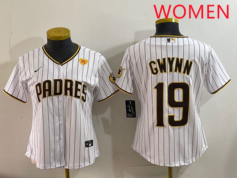 Women San Diego Padres #19 Gwynn White Stripe Game 2025 Nike MLB Jersey style 5
