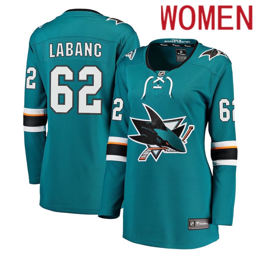 Women San Jose Sharks #62 Kevin Labanc Fanatics Branded Teal Breakaway NHL Jersey