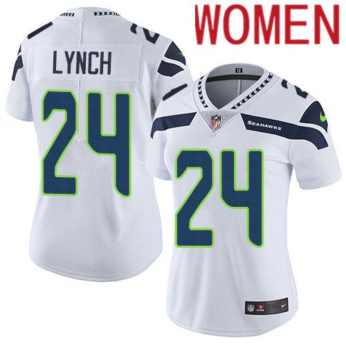 Women Seattle Seahawks #24 Marshawn Lynch Nike White Vapor Limited NFL Jersey