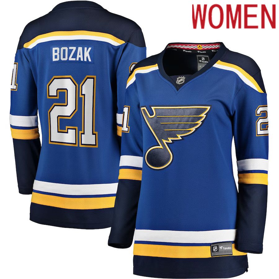 Women St. Louis Blues #21 Tyler Bozak Fanatics Branded Blue Home Breakaway Player NHL Jersey