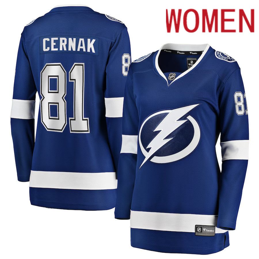 Women Tampa Bay Lightning #81 Erik Cernak Fanatics Branded Blue Home Breakaway Player NHL Jersey