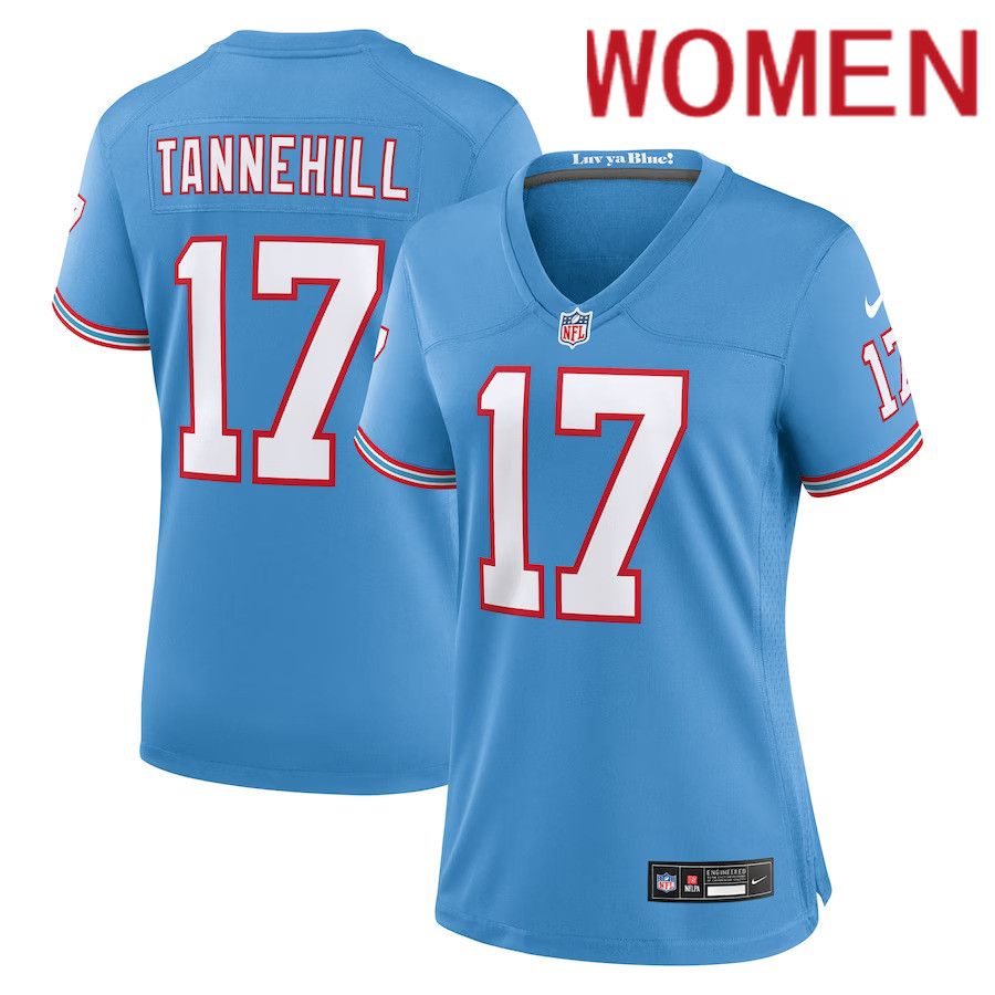 Women Tennessee Titans #17 Ryan Tannehill Nike Light Blue Oilers Throwback Player Game NFL Jersey