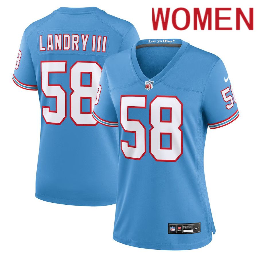Women Tennessee Titans #58 Harold Landry Nike Light Blue Oilers Throwback Player Game NFL Jersey