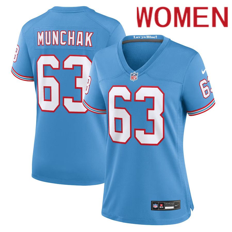 Women Tennessee Titans #63 Mike Munchak Nike Light Blue Oilers Throwback Retired Player Game NFL Jersey