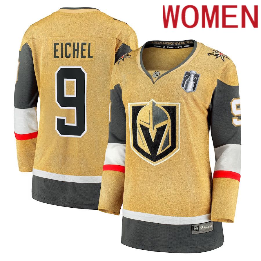 Women Vegas Golden Knights #9 Jack Eichel Fanatics Branded Gold 2023 Stanley Cup Final Home Breakaway Player NHL Jersey