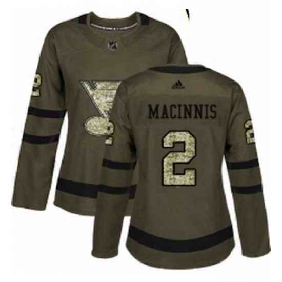 Womens Adidas St Louis Blues #2 Al Macinnis Authentic Green Salute to Service NHL Jersey