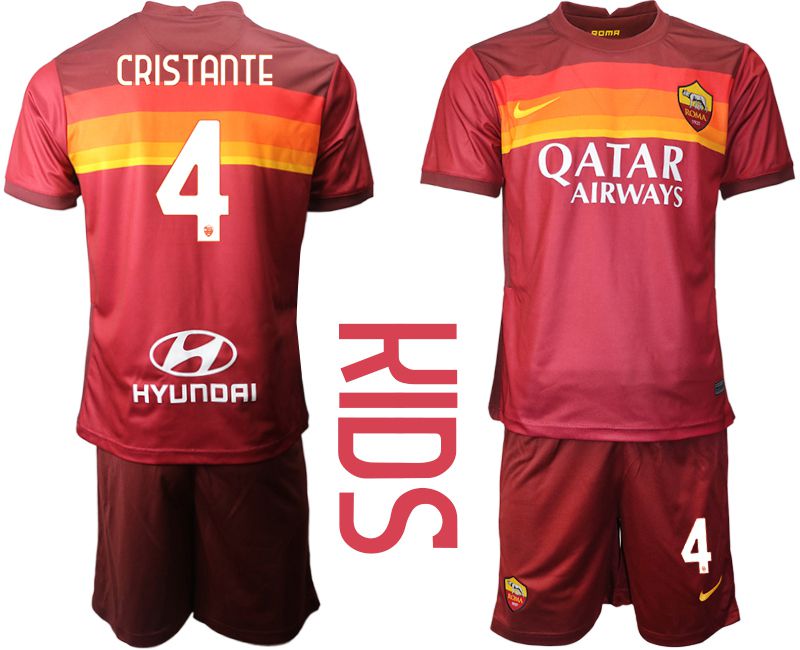 Youth 2020-2021 club AS Roma home #4 red Soccer Jerseys